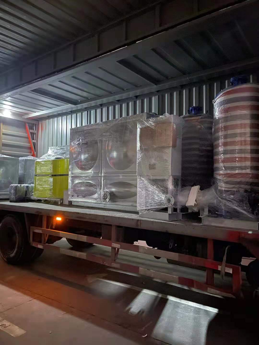 南寧宜家項目和徐州中科項目:一批智能加藥裝置和智能定壓補水裝置及不銹鋼水箱等一批水處理設備裝車發(fā)貨完成,同事們辛苦了,上海奧棟承諾必達!