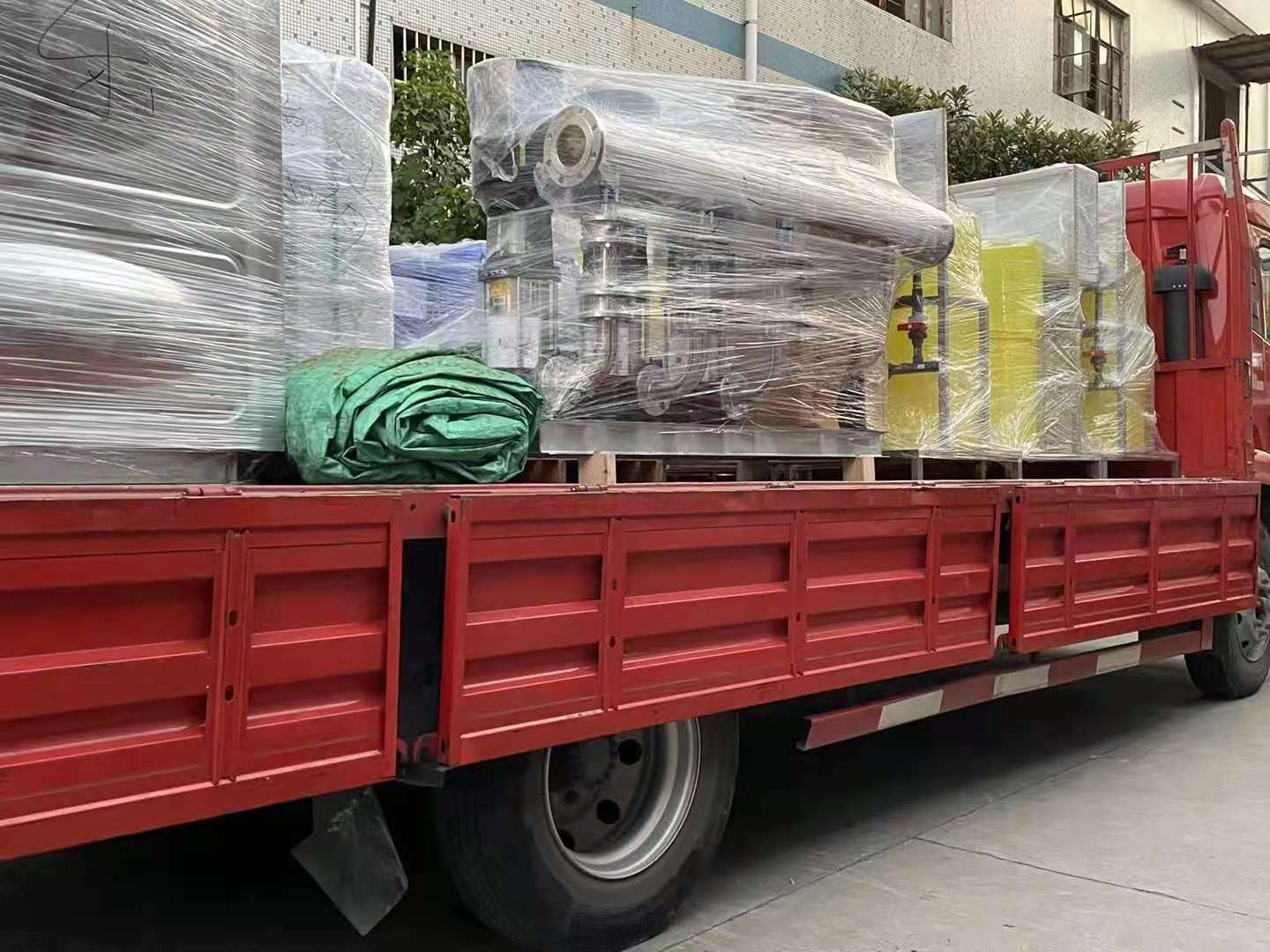 湖州德清項(xiàng)目:一批智能加藥裝置及變頻供水設(shè)備及智能砂濾裝置和不繡鋼加熱水箱裝車(chē)發(fā)貨完成,上海奧棟承諾必達(dá)!