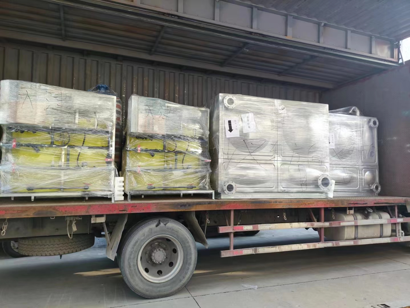 天津項(xiàng)目、棗莊項(xiàng)目、寧波項(xiàng)目:一批不銹鋼水箱和板換及變頻供水設(shè)備裝車發(fā)貨完成,上海奧棟承諾必達(dá)!